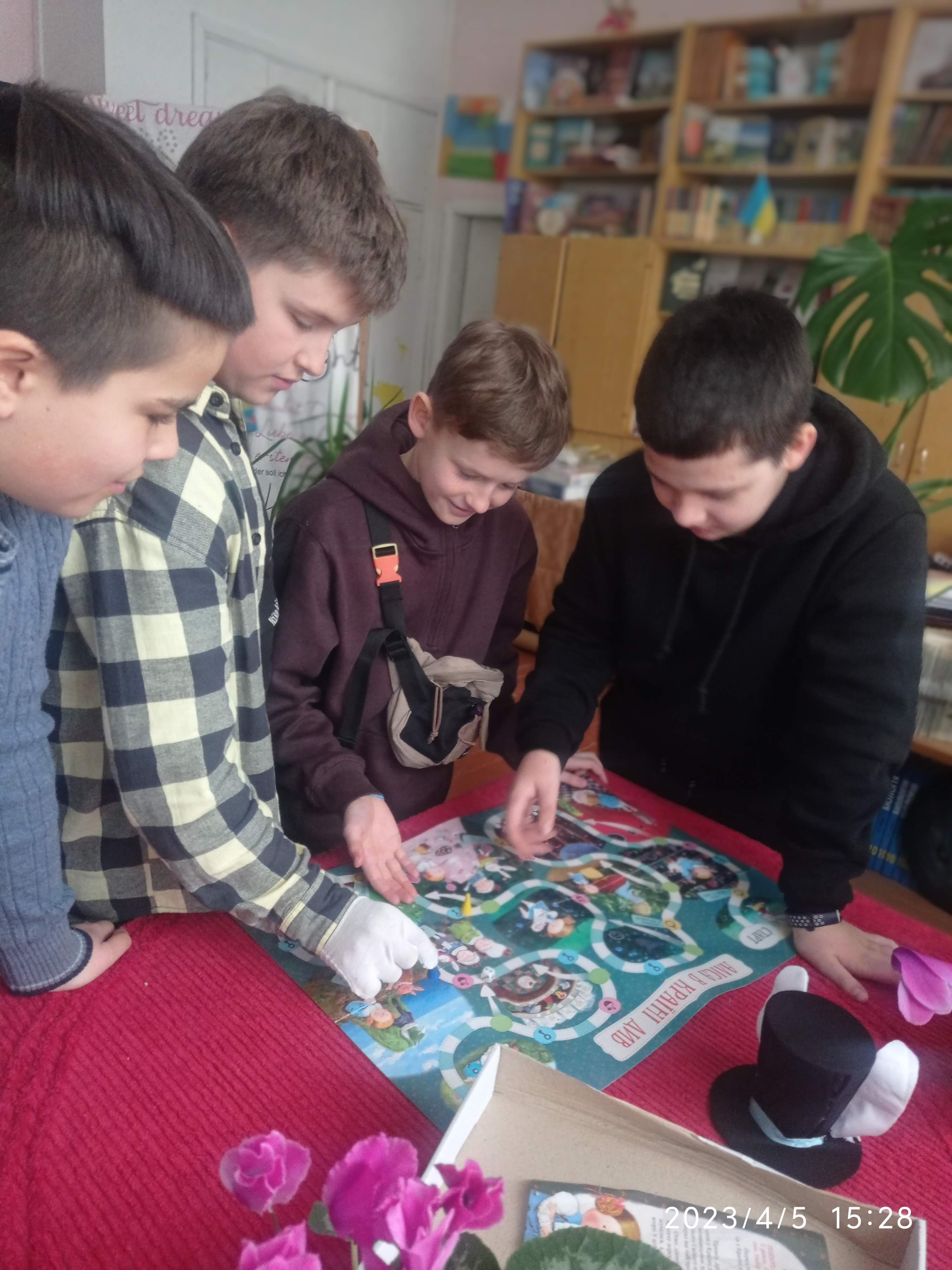 У нас не тільки веселі бібліотечні уроки, а й веселі бібліотечні перерви. З давніх- давен людей вабить світ пригод і фантастики, де все постає більш яскравим. мабуть, немає в світі жодної людини, яка б не мріяла про дивовижні пригоди. Сьогодні до нас завітали учні 5- Б класу Марфін Тимофій, Мамчуров Владислав, Гуменчук Матвій, Береза Павло, та саме вони спробували знайти таємничі двері й опинитись у світі фантазій Аліси, а головне провели весело та пізнавально свій вільний час.
